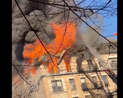 Η φωτιά ξέσπασε γύρω στις 08:20 το πρωί (τοπική ώρα, 15:20 στην Ελλάδα) στον τελευταίο όροφο εξαώροφης πολυκατοικίας στη συνοικία Άπερ Γουέστ Σάιντ. Η περιοχή αποκλείστηκε και περισσότεροι από 100 πυροσβέστες έσπευσαν για να θέσουν υπό έλεγχο την πυρκαγιά προτού εξαπλωθεί σε γειτονικά κτίρια.