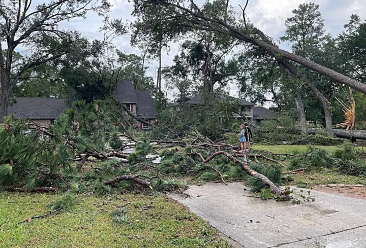 Βίντεο από drone αποκάλυψε την έκταση της καταστροφής: στέγες ξεριζωμένες, συντρίμμια διασκορπισμένα σε αυλές και πισίνες. Φωτογραφίες από την Πυροσβεστική Υπηρεσία Cy-Fair έδειξαν σπασμένα παράθυρα, κατεστραμμένες περιφράξεις και εκτεταμένες ζημιές σε σπίτια.