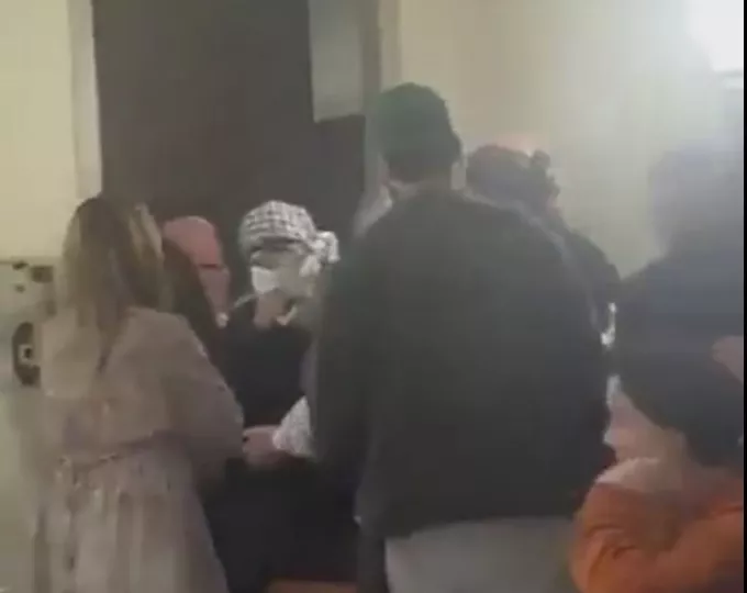 Ο Γιόνι Βιλόγκα, ο οποίος επέζησε της σφαγής στο Kibbutz Mefalsim, μοιραζόταν την ιστορία του το βράδυ της Τετάρτης, όταν αντισημίτες διαδηλωτές που φορούσαν κεφίγια εισέβαλαν στην εκδήλωση, φωνάζοντας συνθήματα, κατηγορώντας το Ισραήλ για «γενοκτονία» και λέγοντας «οι σιωνιστές δεν είναι ευπρόσδεκτοι εδώ».