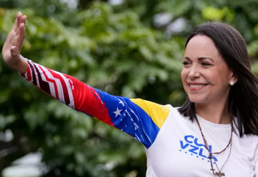 Βραβευμένη με το Νόμπελ Ειρήνης για τις προσπάθειές υπέρ της δημοκρατικής μετάβασης στην Βενεζουέλα, η 58χρονη που ζει κρυμμένη στην χώρα της υποσχέθηκε ότι «θα κάνει ό,τι της είναι δυνατόν» για να επιστρέψει στην Βενεζουέλα παρά τους κινδύνους να συλληφθεί.