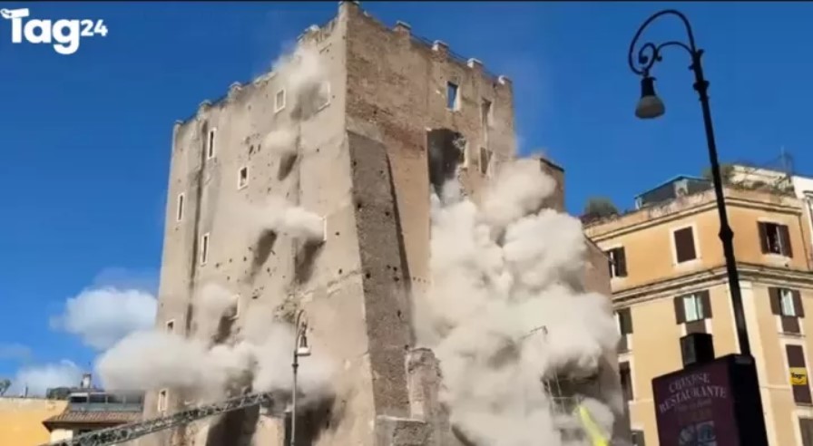 Νέα κατάρρευση σημειώθηκε πριν από λίγο στον μεσαιωνικό «Πύργο των Κόμηδων», σε μικρή απόσταση από το Κολοσσαίο.