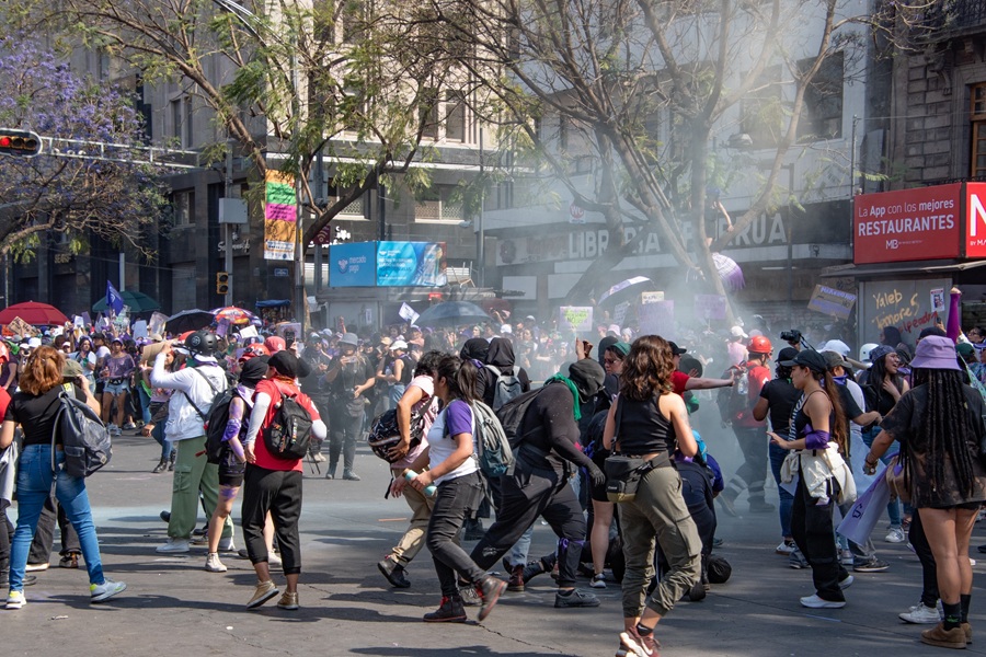 Κατά την άφιξη των διαδηλωτών έξω από το προεδρικό μέγαρο, ορισμένοι κουκουλοφόροι έριξαν τα μεταλλικά φράγματα που είχε τοποθετήσει η αστυνομία γύρω από αυτό και επιτέθηκαν με πέτρες στους αστυνομικούς. Οι δυνάμεις ασφαλείας έκαναν χρήση δακρυγόνων για να απωθήσουν το πλήθος.