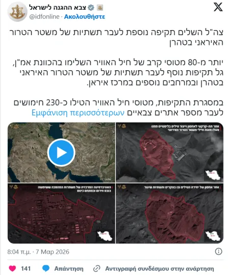 Δείτε εδώ αναλυτικά όσα συνέβησαν κατά την 7η μέρα του πολέμου στη Μέση Ανατολή