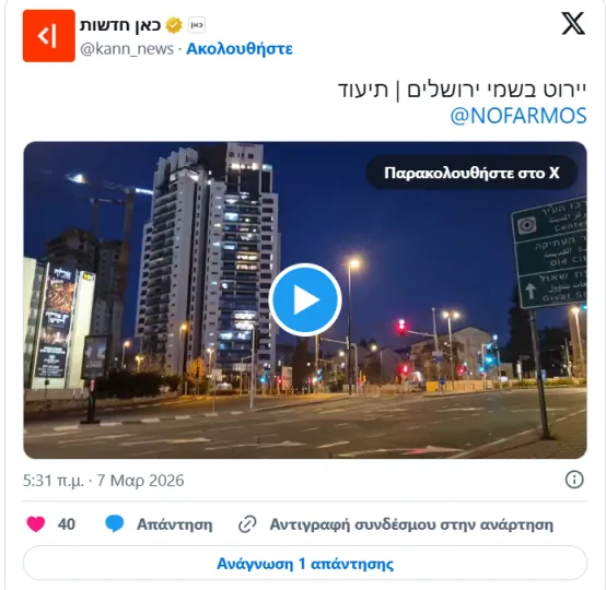 06:33 Νέα ανάρτηση των IDF για επικείμενο πυραυλικό πλήγμα του Ιράν κατά του Ισραήλ