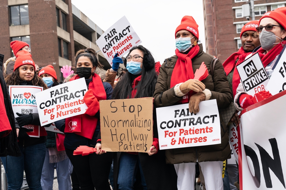 «Περίπου 4.200 νοσηλευτές» συνεχίζουν την απεργία, σύμφωνα με το NYSNA.