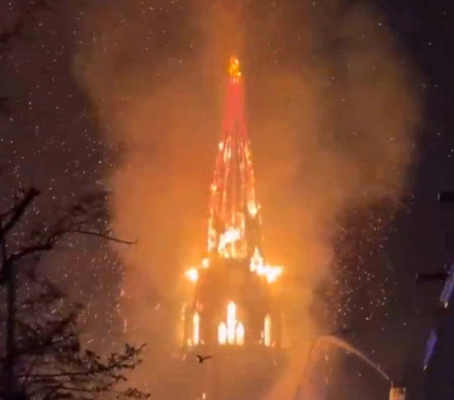 Ο πύργος ύψους 50 μέτρων κατέρρευσε και η στέγη υπέστη σοβαρές ζημιές, σύμφωνα με τις αρχές του Άμστερνταμ.