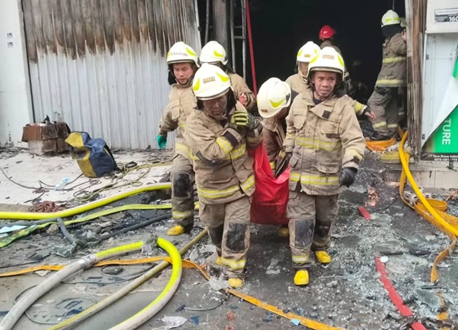 Οπτικό υλικό, που προβλήθηκε από το Kompas TV, δείχνει δεκάδες πυροσβέστες να προσπαθούν να απομακρύνουν ανθρώπους από το κτίριο.