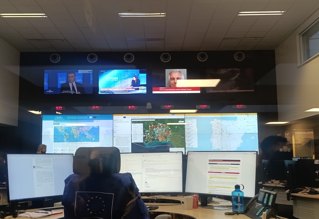 Σε μια μεγάλη αίθουσα γεμάτη οθόνες, δορυφορικές εικόνες, ζωντανά δεδομένα και επιχειρησιακές ειδοποιήσεις από κάθε γωνιά του κόσμου, αναβοσβήνουν σήματα για πυρκαγιές, πλημμύρες, σεισμούς, υγειονομικές και ανθρωπιστικές κρίσεις. Γύρω από τα συστήματα παρακολούθησης, ομάδες αναλυτών και ειδικών εργάζονται αδιάκοπα, ανταλλάσσοντας πληροφορίες, αξιολογώντας κινδύνους και συντονίζοντας την άμεση ευρωπαϊκή απόκριση.