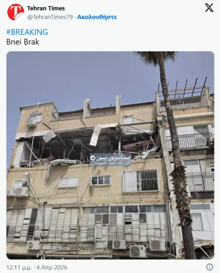 07:12 Πυραυλική επίθεση του Ιράν σε κατοικημένες περιοχές στο κεντρικό Ισραήλ, με τραυματία στο Τελ Αβίβ