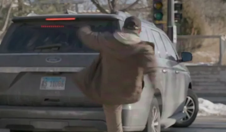 Ο 37χρονος νοσηλευτής φτύνει ένα από τα SUV που μεταφέρουν τους αξιωματικούς. Στη συνέχεια κλωτσάει το πίσω μέρος του οχήματος και με μια δεύτερη κλωτσιά σπάει το δεξί πίσω φανάρι του οχήματος.
