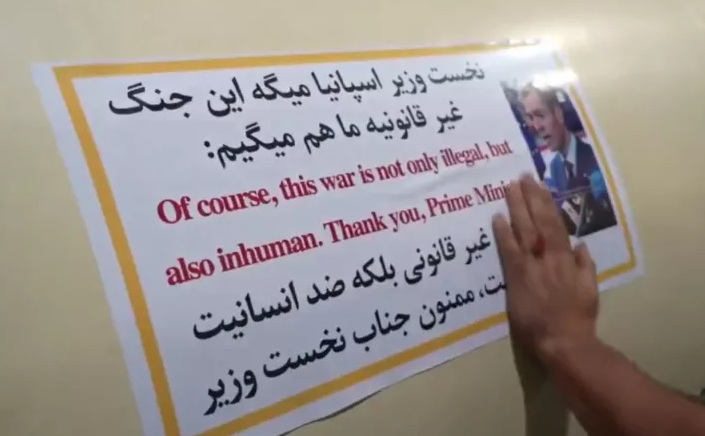 Σημειώνεται ότι στους πυραύλους αναφέρεται η δήλωση Σάντσεθ «ο πόλεμος αυτός δεν είναι μόνο παράνομος αλλά και απάνθρωπος - Ευχαριστούμε κύριε πρωθυπουργέ».