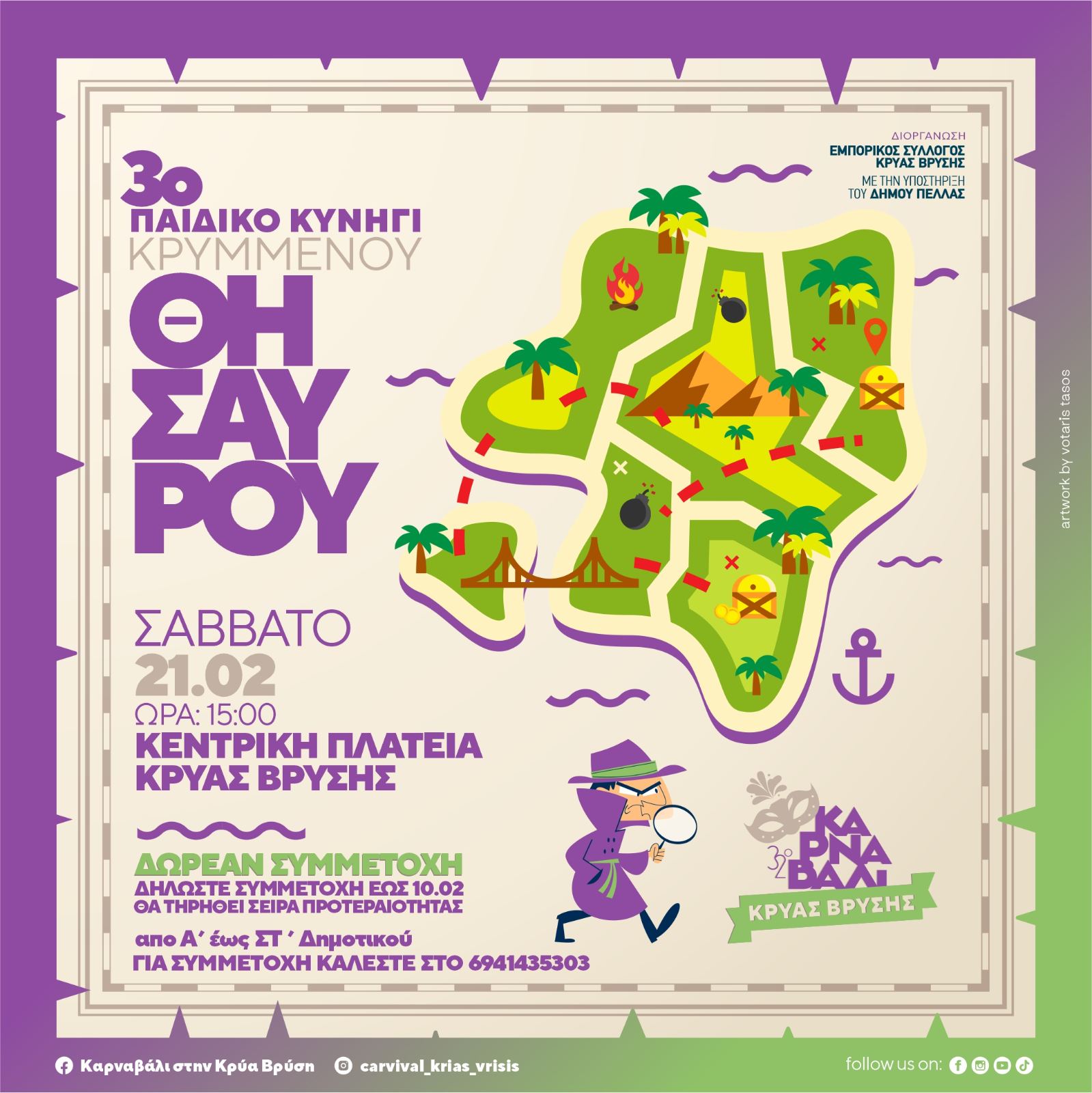 Για πληροφορίες και δηλώσεις συμμετοχών ανατρέξτε στην επίσημη σελίδα στο Instagram carnival_krias_vrisis και στο facebook Καρναβάλι στην Κρύα Βρύση.