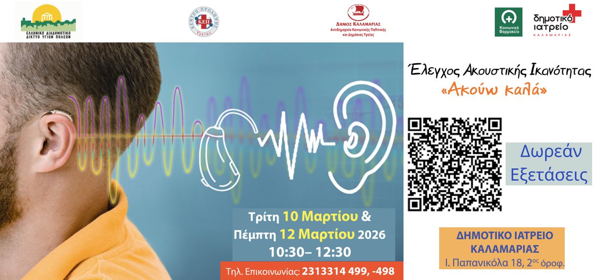 Ο Δήμος Καλαμαριάς συνεχίζει να υλοποιεί δράσεις πρόληψης και προαγωγής της υγείας, ενισχύοντας την ενημέρωση και την πρόσβαση των πολιτών σε υπηρεσίες υγείας.