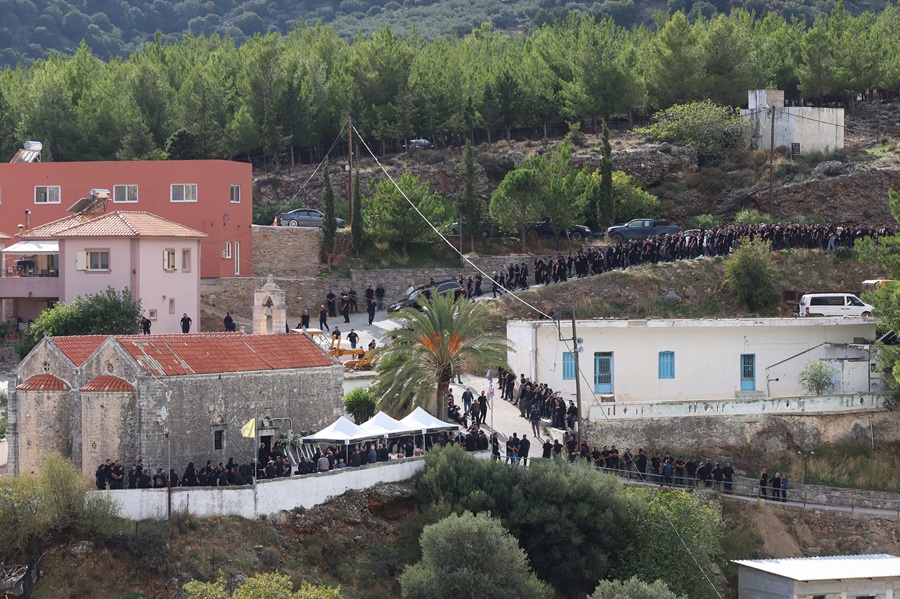 Πλήθος κόσμου έδωσε το «παρών» στην κηδεία στον Ιερό Ναό Ευαγγελισμού της Θεοτόκου, με τις αστυνομικές δυνάμεις να είναι ενισχυμένες και παραταγμένες σε διάφορα σημεία του χωριού αλλά και της ευρύτερης περιοχής.
