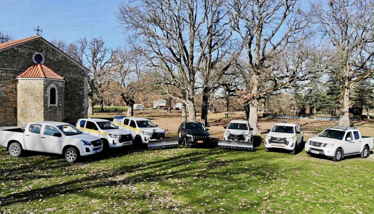 Μεταξύ αυτών, δύο εκχιονιστικά με μαχαίρι και αλατιέρα και ένα πυροσβεστικό όχημα με αντλία για επέμβαση στα πρώτα λεπτά εκδήλωσης μιας πυρκαγιάς .