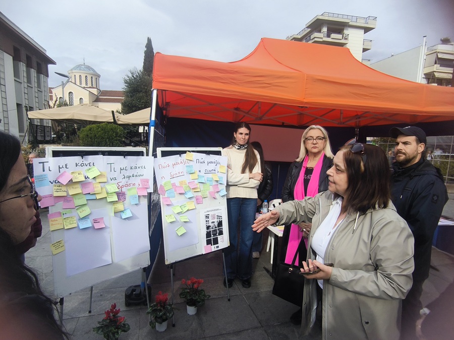 Κατά τη διάρκεια της δράσης παρουσιάστηκαν οι διαθέσιμες δομές υποστήριξης, η γραμμή 15900, οι ξενώνες φιλοξενίας, καθώς και το Δίκτυο των Safe Spots που λειτουργούν ήδη στην Καλαμαριά, παρέχοντας ασφάλεια και προστασία στα θύματα της έμφυλης βίας.