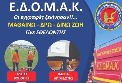 Οι εγγραφές έχουν ήδη αρχίσει ενώ η εκπαίδευση παρέχεται δωρεάν σε όλες και όλους τους ενδιαφερόμενους. Όσοι επιθυμούν να εγγραφούν μπορούν να σκανάρουν το QR code που υπάρχει στη σχετική αφίσα (επισυνάπτεται) ή να επικοινωνούν με τους εθελοντές της ΕΔΟΜΑΚ στα τηλέφωνα 6984601762 και 6951940218.