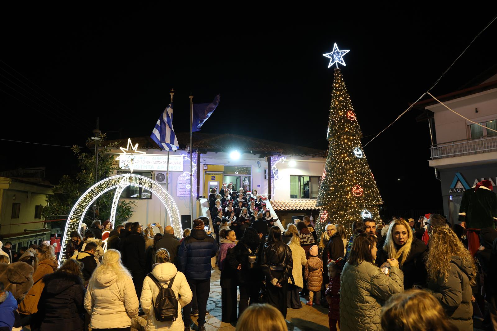 Μικροί και μεγάλοι μέτρησαν αντίστροφα και το δέντρο που στήθηκε στην πλατεία του χωριού φωταγωγήθηκε. Κατά την διάρκεια της εκδήλωσης τα παιδιά είχαν την δυνατότητα να παίξουν με τον Άη Βασίλη, τα ξωτικά του και τον ξυλοπόδαρο. Επίσης, τα τμήματα μοντέρνου χορού του Πολιτιστικού Συλλόγου Δρυμού, με την καθοδήγηση της γυμνάστριας Χάιδως Πανούση, παρουσίασαν χορούς και μάγεψαν το κοινό. Την εκδήλωση πλαισίωσαν μουσικά, ψάλλοντας χριστουγεννιάτικα τραγούδια και τα κάλαντα, η χορωδία του ΚΑΠΗ Δρυμού με μαέστρο τον Αχιλλέα Ρούση, η χορωδία Φίλων Μουσικής Μελισσοχωρίου με χοράρχη τον Χαρίση Κατελα-Καζαμία και τον Ανδρέα Μαρκάκη στο ακορντεόν και ο Σύλλογος Κρητών Ωραιοκάστρου και φίλων «Ερωτόκριτος». Ιδιαίτερη νότα στην εκδήλωση έδωσε και ο Σούλης Γιαμπάστος, ο οποίος ντυμένος ως Άγιος Βασίλης, μοίρασε γλυκά και χαρά στα παιδιά και φωτογραφήθηκε μαζί τους. Την εκδήλωση υποστήριξαν τα μέλη της ΕΘΕΛΟΔ Δρυμού.