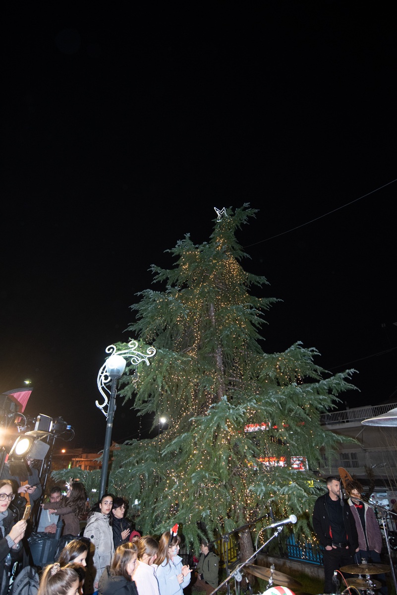 Έλαμψε με χιλιάδες λαμπιόνια το χριστουγεννιάτικο δέντρο στο πάρκο του πρώην δημαρχείου της Πολίχνης, το απόγευμα τη Τρίτης.