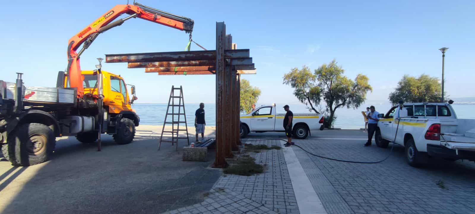 Αλλάζει η εικόνα της πλατείας 28ης Οκτωβρίου με τις μεταλλικές κατασκευές οι οποίες είχαν διαβρωθεί.