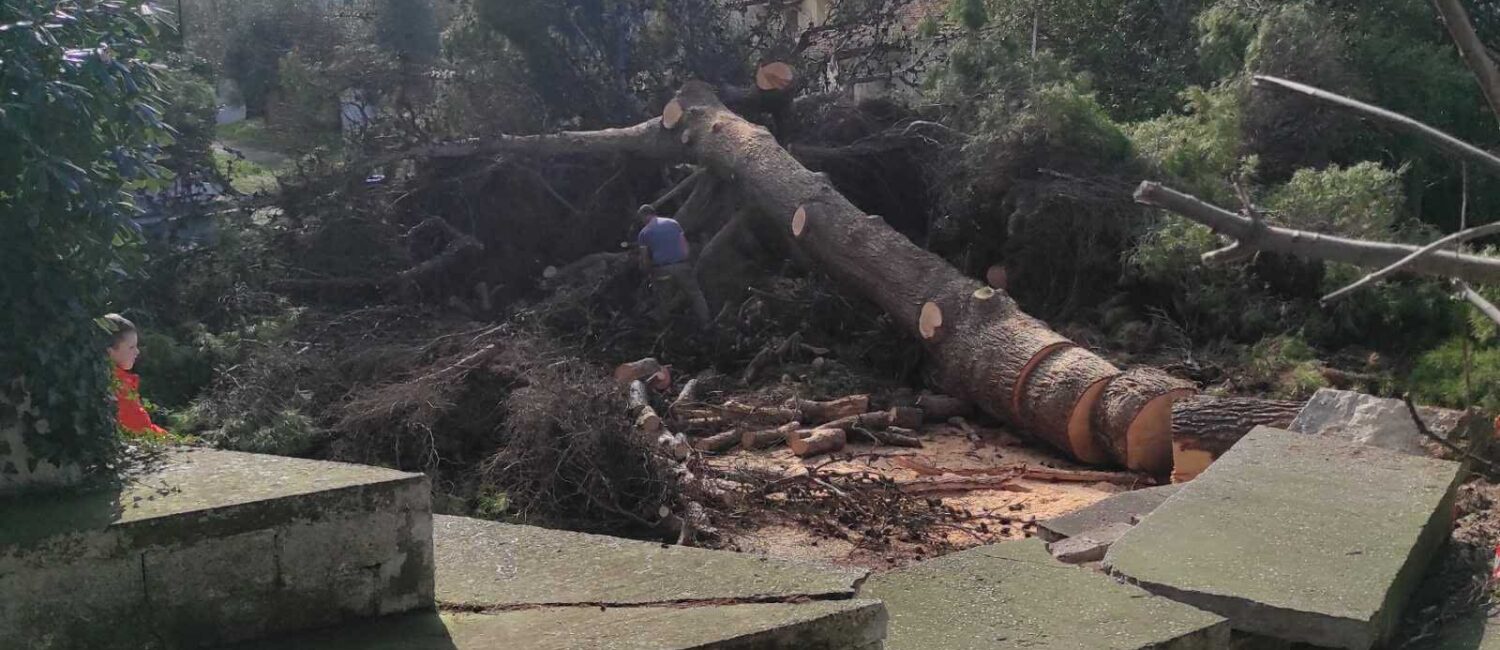 Ακολούθως, ολοκληρώθηκε η απομάκρυνση όλων των υπολειμμάτων του δένδρου, ενώ τα κλαδιά οδηγήθηκαν προς ανακύκλωση, στο πλαίσιο της περιβαλλοντικά υπεύθυνης διαχείρισης των φυσικών πόρων.