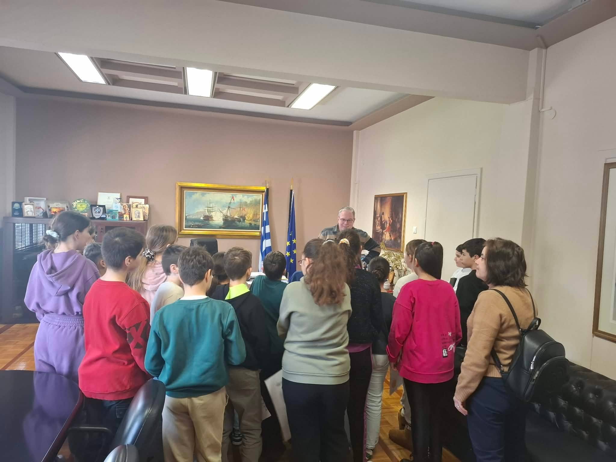 Οι μαθητές είχαν την ευκαιρία να θέσουν ερωτήσεις, αποκτώντας πολύτιμες γνώσεις για τη διοίκηση του τόπου τους. Στη συνέχεια, οι μαθητές ξεναγήθηκαν στους χώρους του Δημαρχείου, όπου ο Αντιδήμαρχος Παιδείας, Αλέξανδρος Χατζόπουλος και υπηρεσιακοί παράγοντες τους παρουσίασαν το έργο των υπηρεσιών του Δήμου και τους εξήγησαν πώς αυτές συμβάλλουν στην καθημερινή εξυπηρέτηση των πολιτών και στη βελτίωση της ποιότητας ζωής στην τοπική κοινωνία.