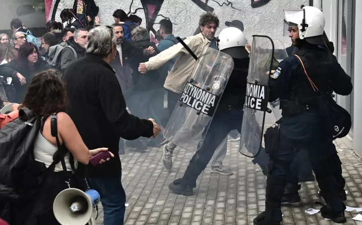 Ειδικότερα, σύμφωνα με την ΕΛΑΣ, λίγο μετά τις 10 το πρωί μέλη του συλλόγου γονέων του 36ου δημοτικού σχολείου Αθήνας και από τις συλλογικότητες «Όχι μετρό στην πλατεία Εξαρχείων» και «Ανοιχτή συνέλευση υπεράσπισης του λόφου Στρέφη» στην προσπάθεια τους να εισέλθουν στο κτήριο επιτέθηκαν στις αστυνομικές δυνάμεις, που τους απώθησαν κάνοντας χρήση χημικών και χειροβομβίδων κρότου-λάμψης.
