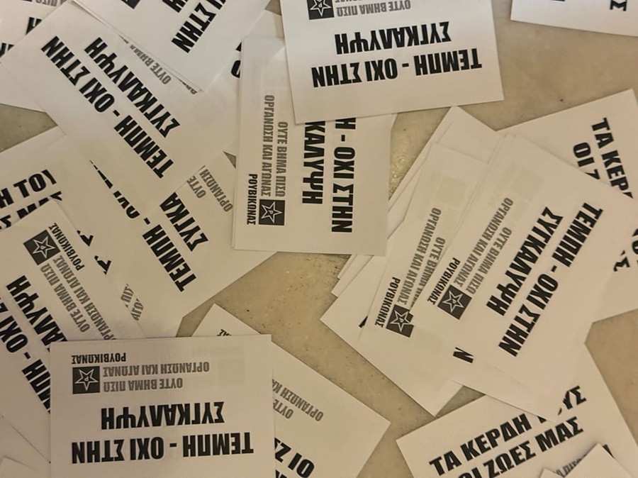 Συγκεκριμένα, μέλη του Ρουβίκωνα σύνθημα για τα Τέμπη και πέταξαν τρικάκια.