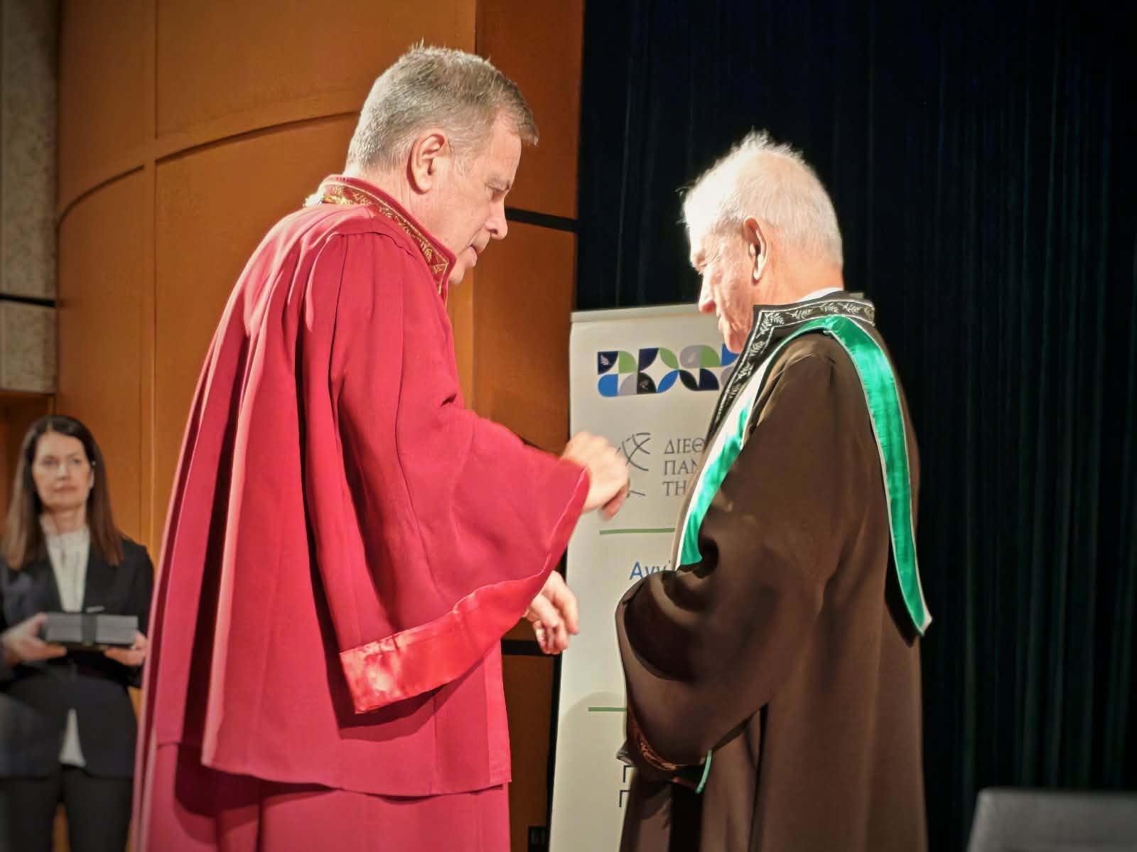 Η τελετή αναγόρευσης ενός εκ των σημαντικότερων, σύγχρονων, Ελλήνων εικαστικών σε Επίτιμο Διδάκτορα πραγματοποιήθηκε στο κατάμεστο Αμφιθέατρο «Ευαγόρας Παλληκαρίδης» παρουσία εκπροσώπων της τοπικής κοινωνίας, ανάμεσά τους ο Αντιπεριφερειάρχης Σερρών, Παναγιώτης Σπυρόπουλος, η Δήμαρχος Σερρών, Βαρβάρα Μητλιάγκα, ο Πρόεδρος Επιμελητηρίου Σερρών, Αθανάσιος Μαλλιαράς, εκπροσώπων πολιτιστικών φορέων και φοιτητριών/των του Πανεπιστημίου.