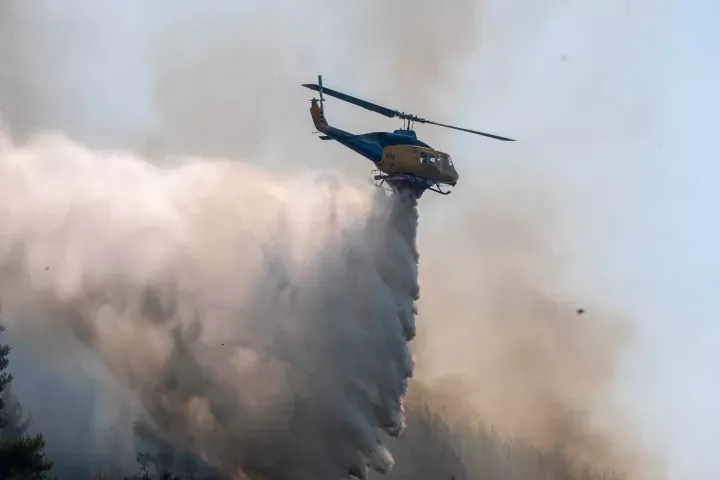Ειδικότερα, στο σημείο επιχειρούν 102 πυροσβέστες με 6 ομάδες πεζοπόρων τμημάτων της 18ης ΕΜΟΔΕ και 28 οχήματα, ενώ από αέρος πραγματοποιούν ρίψεις νερού 10 πυροσβεστικά αεροπλάνα και 4 ελικόπτερα.