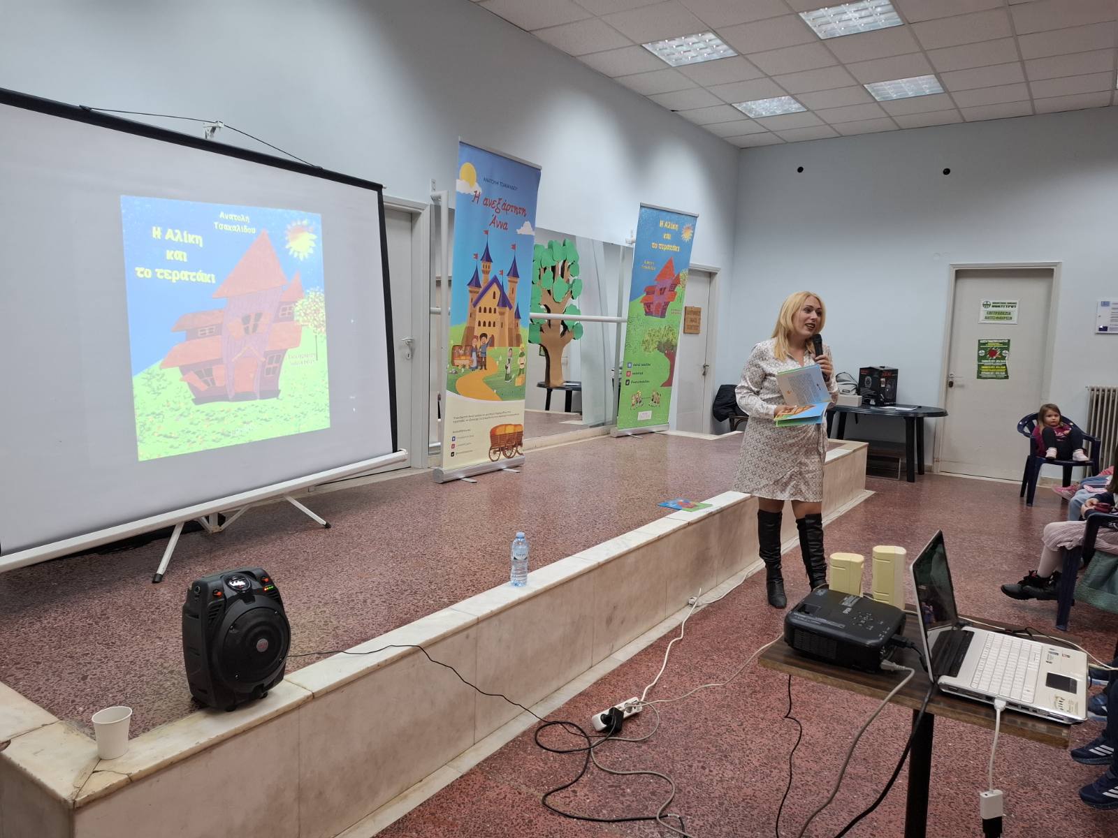 Η συγγραφέας παρουσίασε με ξεχωριστό τρόπο τα βιβλία της «Η ανεξάρτητη Άννα» και «Η Αλίκη και το τερατάκι», μαγεύοντας το κοινό με την αφήγησή της. Μέσα από την ιστορία και τον διάλογο, άνοιξε μια ουσιαστική κουβέντα γύρω από τον εκφοβισμό, την ανεξαρτησία και τη δύναμη που έχει κάθε παιδί να εκφράζεται και να διεκδικεί τον χώρο του με σεβασμό και αυτοπεποίθηση.
