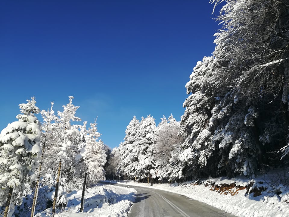 Με αντιολισθητικές αλυσίδες διεξάγεται η κυκλοφορία των οχημάτων στην Παλαιά Εθνική Οδό Θεσσαλονίκης - Πολυγύρου.