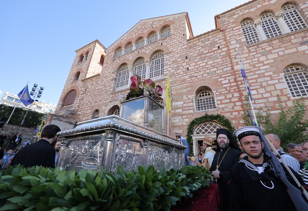 H δοξολογία τελέστηκε στον Ιερό Ναό του Αγίου Δημητρίου, παρουσία του Προέδρου της Δημοκρατίας Κωνσταντίνου Τασούλα, του Προέδρου της Κυπριακής Δημοκρατίας, Νίκου Χριστοδουλίδη, πολιτικών και στρατιωτικών αρχών και εκπροσώπων της Τοπικής Αυτοδιοίκησης.