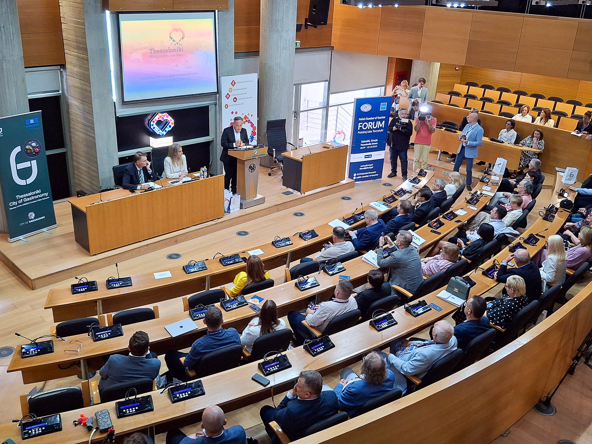 Χαιρετισμό στο συνέδριο απηύθυναν ο υφυπουργός Εσωτερικών, αρμόδιος για θέματα Μακεδονίας - Θράκης Κώστας Γκιουλέκας, ο οποίος αναφέρθηκε στους ιδιαίτερους δεσμούς της Ελλάδας με την Πολωνία και η αντιπεριφερειάρχης Τουρισμού Κεντρικής Μακεδονίας Βίκυ Χατζηβασιλείου, ενώ η γενική διευθύντρια του Οργανισμού Τουρισμού Θεσσαλονίκης Κυριακή Ουδατζή υπογράμμισε πως «στηρίζουμε σταθερά τις απευθείας πτήσεις στη Θεσσαλονίκη και τον εισερχόμενο τουρισμό από αγορές που είναι ανερχόμενες οικονομικά και κάθε μας δράση ακολουθεί αυτό το πλάνο».