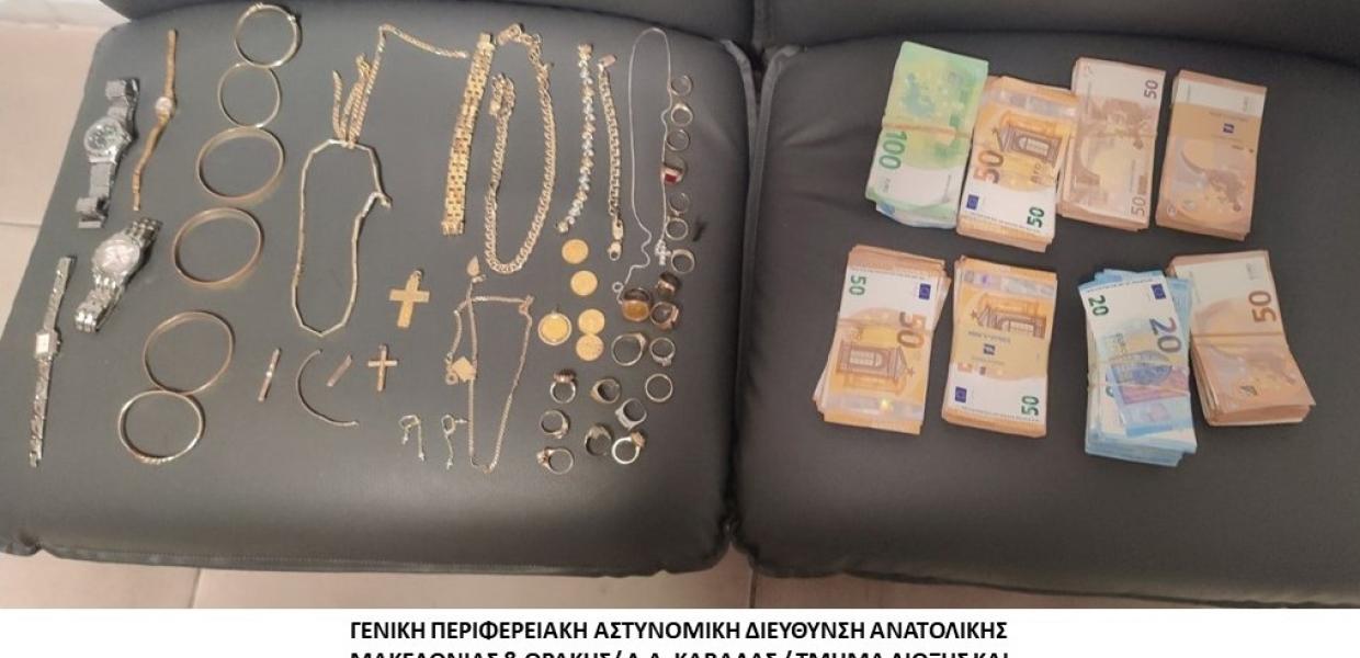 Από την κατοχή των δραστών και το εσωτερικό του οχήματος, όπου βρέθηκαν επιμελώς κρυμμένα χρήματα, κατασχέθηκαν 45.000 ευρώ και κοσμήματα, που αποδόθηκαν στις ηλικιωμένες παθούσες, καθώς επίσης και επιπλέον κοσμήματα - τιμαλφή και χρηματικό μικροπόσο, το ιδιοκτησιακό καθεστώς των οποίων ερευνάται. Κατασχέθηκε επίσης το όχημα που χρησιμοποίησαν οι δράστες.