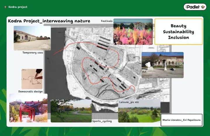 Οι ιδέες συγκλίνουν στην ανάγκη να μετατραπεί το Κόδρα σε έναν ανοιχτό δημόσιο χώρο που θα συνδυάζει την προστασία του φυσικού τοπίου με ήπιες δραστηριότητες αναψυχής, εκπαίδευσης και πολιτισμού.