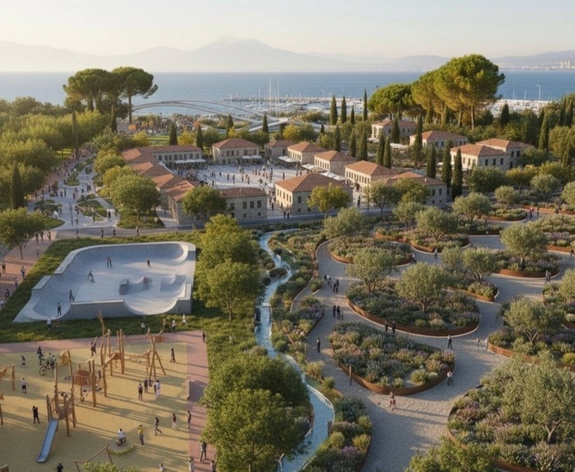 Η πρόταση, βασισμένη στις αρχές του New European Bauhaus (Αειφορία, Καλαισθησία, Συμμετοχικότητα), μετατρέπει τον χώρο σε μητροπολιτικό πάρκο για όλη τη Θεσσαλονίκη, συνδυάζοντας την ανάδειξη της ιστορίας με την καινοτομία. Προβλέπει τη διαμόρφωση ζωνών πολιτισμού στα 16 διατηρητέα κτίρια, εκτεταμένων χώρων ελεύθερου πρασίνου, αθλητισμού και αναψυχής, δημιουργώντας έναν πράσινο, βιώσιμο, προσβάσιμο και ζωντανό δημόσιο χώρο.