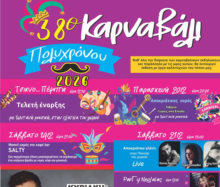 Ο υπεύθυνος επικοινωνίας του Πολιτιστικού Συλλόγου Πολυχρόνου Κωνσταντίνος Γραμμάτης παρουσίασε αναλυτικά το πρόγραμμα των εκδηλώσεων, τονίζοντας ότι το καρναβάλι διατηρεί υψηλό επίπεδο θεματολογίας και σάτιρας, με σεβασμό στο κοινό και έμφαση στη συμμετοχή όλων. Η έναρξη των εκδηλώσεων θα γίνει την Πέμπτη 12 Φεβρουαρίου, Τσικνοπέμπτη, στις 12.30 στην πλατεία Πολυχρόνου, ενώ η κορύφωση έρχεται την Κυριακή 22 Φεβρουαρίου με τη μεγάλη καρναβαλική παρέλαση και την τελετή λήξης με το κάψιμο του Καρνάβαλου στην παραλία του Πολυχρόνου.
