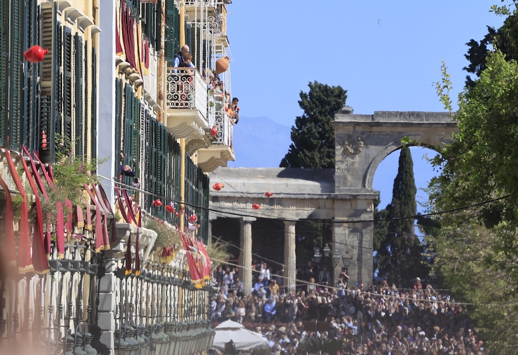 Στην πλατεία δημαρχείου είχε συγκεντρωθεί πλήθος κόσμου για να απολαύσει το έθιμο που αναβιώνει από το 1993 ο φορέας κορφιάτικης έκφρασης.