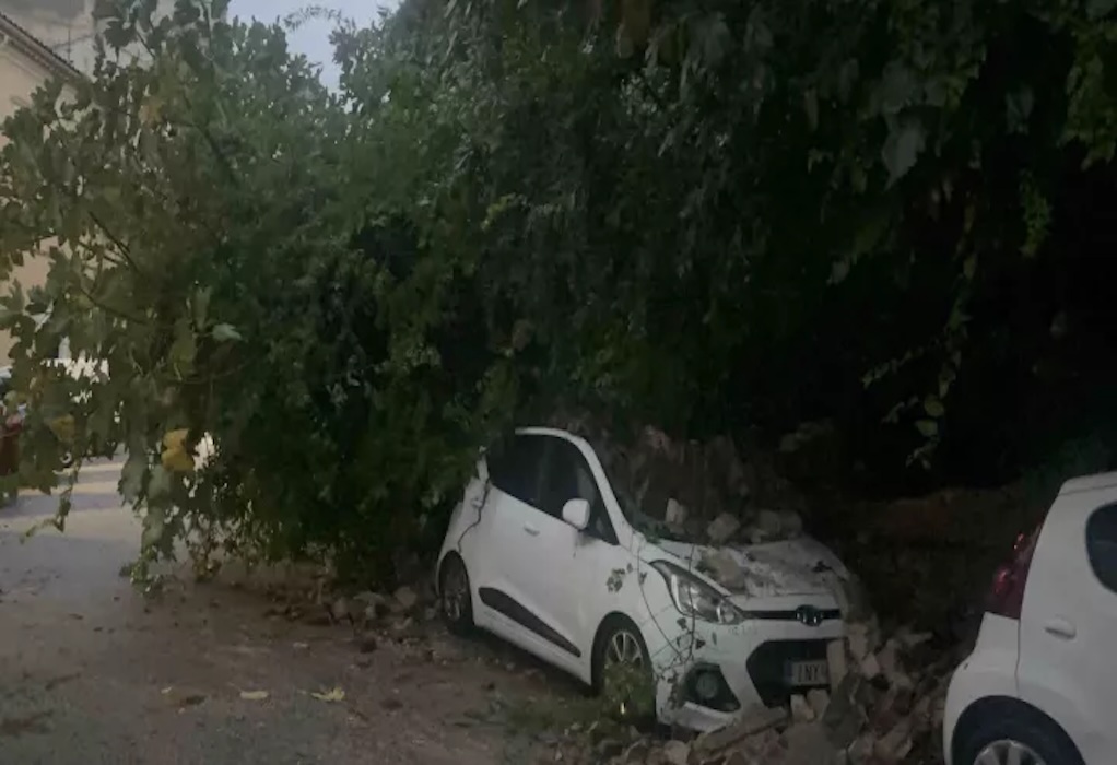 Στο κέντρο της πόλης ξεριζώθηκε αιωνόβιο δένδρο και κατέρρευσε τμήμα τοιχίου παλιών οχυρώσεων με αποτέλεσμα να καταπλακωθούν 3 αυτοκίνητα στην οδό Στεφάνου Πάδοβα. Αυτή ώρα στο σημείο επιχειρούν η Πυροσβεστική και η Πολιτική Προστασία του Δήμου.