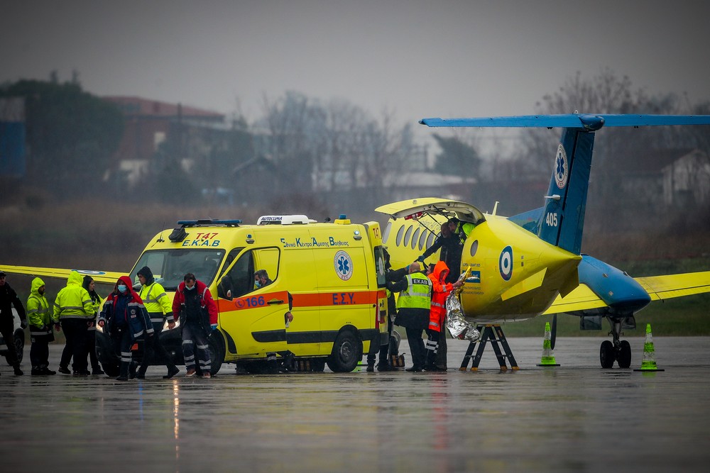 Νωρίτερα σήμερα, στις 08:40 π.μ., το αεροσκάφος Beechcraft King Air των Αεροδιακομιδών του ΕΚΑΒ απογειώθηκε από το Στρατιωτικό Αεροδρόμιο της Ελευσίνας με προορισμό την Τιμισοάρα, με συνοδεία ιπτάμενου ιατρού και διασωστών του ΕΚΑΒ. Μετά την άφιξη στην Τιμισοάρα, σε συνεργασία με το ιατρικό προσωπικό του νοσοκομείου, πραγματοποιήθηκε η παραλαβή των δύο τραυματιών και στη συνέχεια το αεροσκάφος αναχώρησε για την Ελλάδα και προσγειώθηκε στις 13:10 μ.μ. στο Διεθνές Αεροδρόμιο Θεσσαλονίκης «Μακεδονία». Στο αεροδρόμιο ανέμεναν δύο Κινητές Ιατρικές Μονάδες του ΕΚΑΒ και στη συνέχεια οι τραυματίες διακομίστηκαν με ασφάλεια στο Γενικό Νοσοκομείο Θεσσαλονίκης «Γ. Παπαγεωργίου», για την περαιτέρω ιατρική εκτίμηση της κατάστασής τους.