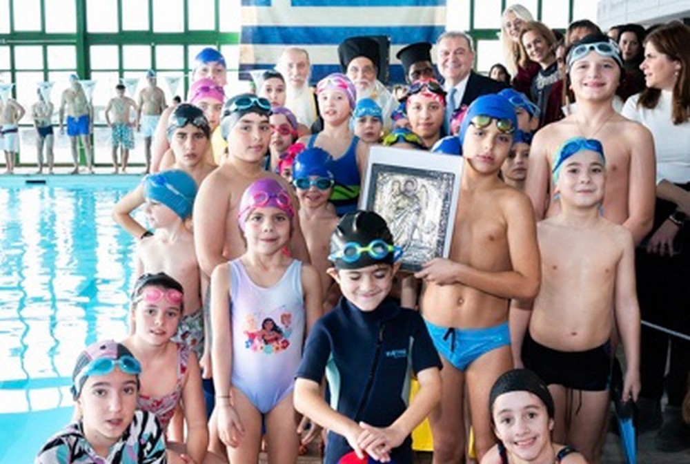Στο δημοτικό κολυμβητήριο Πανοράματος οι ιερείς των Ιερών Ναών Αγίου Γεωργίου και Αγίου Παντελεήμονος έριξαν 2 σταυρούς, τηρώντας το έθιμο.