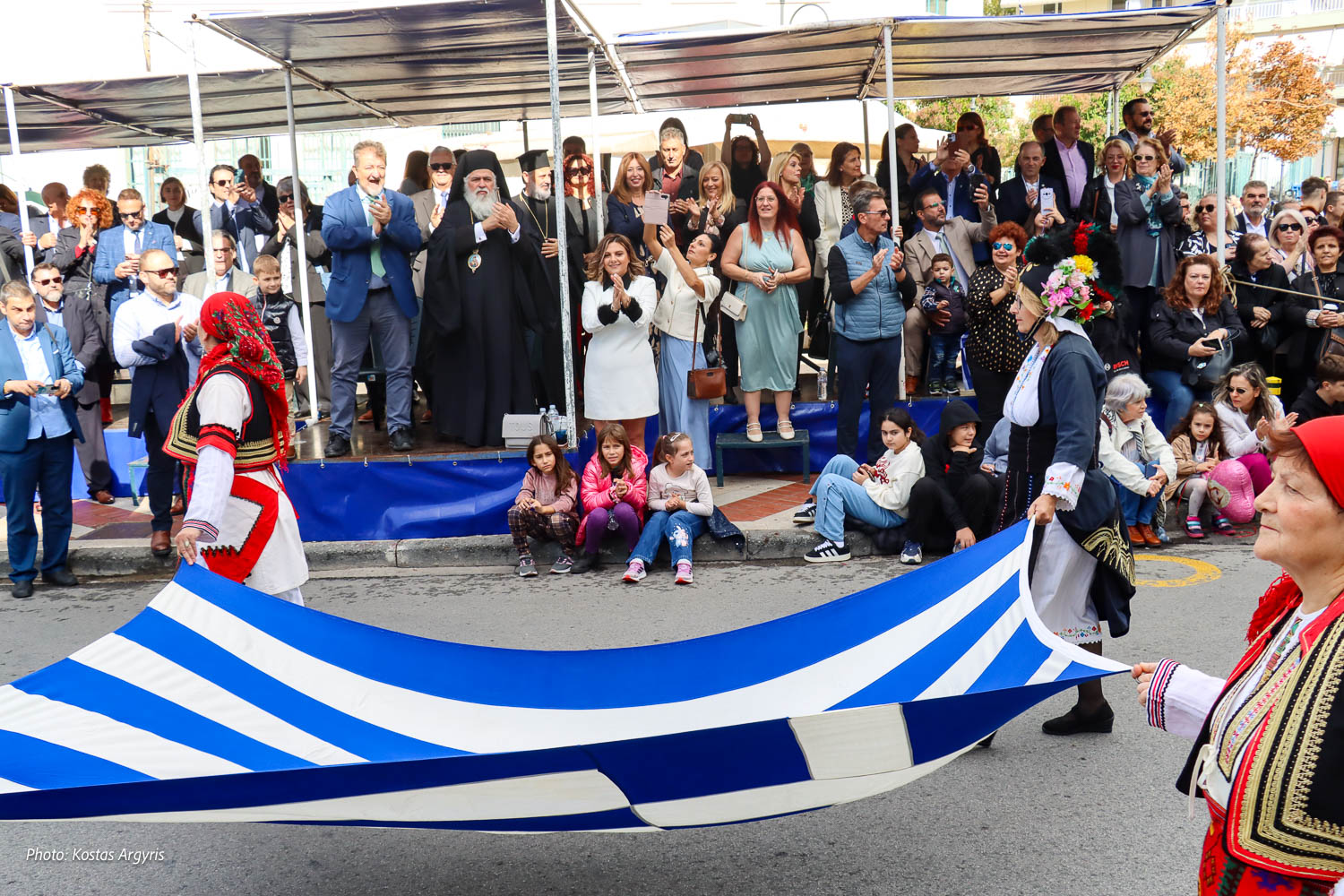 Είχε προηγηθεί η επίσημη δοξολογία στον ιερό ναό του Αγίου Γεωργίου στη Νεάπολη, η εκφώνηση του πανηγυρικού της ημέρας από την δημοτική σύμβουλο Σταυρούλα Δόλια-Χαριτίδου και η κατάθεση στεφάνων στη μνήμη των ηρώων του 1940. Ο καλός καιρός ήταν μαζί μας σήμερα κι έτσι παρακολούθησαν την παρέλαση πολλοί δημότες και κάτοικοι κάθε ηλικίας την ώρα που πτήσεις αεροσκαφών της πολεμικής αεροπορίας «έντυσαν» με τους υποβλητικούς ήχους τους την ημέρα. Η μπάντα που παιάνιζε σε όλη τη διάρκεια της παρέλασης ήταν η Φιλαρμονική του δήμου Νεάπολης-Συκεών.