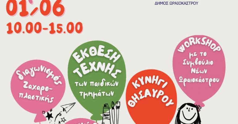 Φέτος, λοιπόν, το πάρκο «Βουναλάκι» (στο παρεκκλήσι των Αποστόλων Πέτρου και Παύλου) στο Ωραιόκαστρο θα φιλοξενήσει την έκθεση των εικαστικών των παιδικών τμημάτων της Λέσχης Πολιτισμού «Φιλότεχνον». Τα παιδιά που θα συμμετάσχουν θα έχουν τη δυνατότητα να παίξουν σε κυνήγι θησαυρού, να κάνουν κόλπα με τον Ποδηλατικό Σύλλογο Ωραιοκάστρου, να λάβουν μέρος στο εργαστήρι του «Φιλότεχνον», να παίξουν με την ομάδα του WECAMPDOIT και του ΡΟΔΑΝΙ, να συμμετάσχουν σε έναν «γλυκό» διαγωνισμό ζαχαροπλαστικής και να απολαύσουν ένα book bazaar από τα βιβλιοπωλεία της περιοχής.