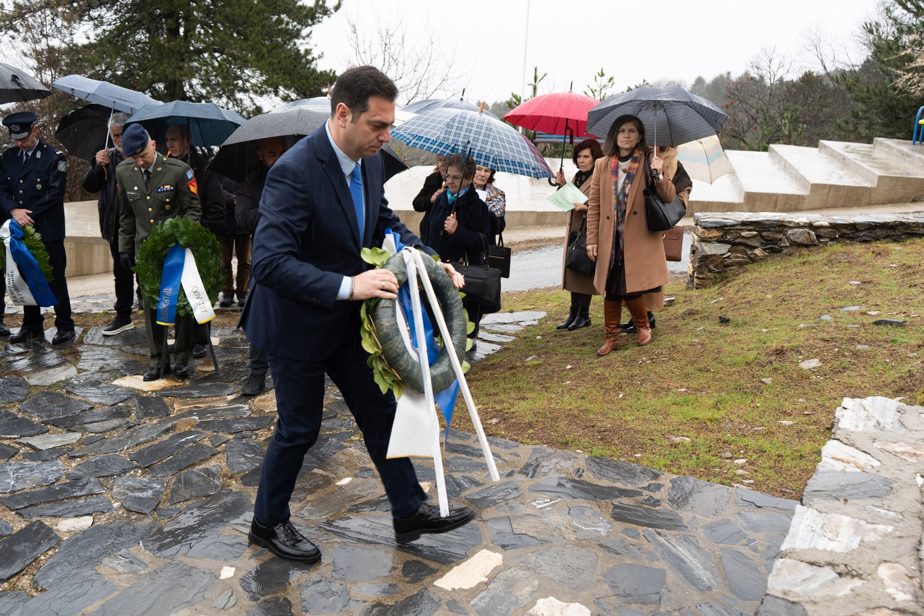 Στη συνέχεια, με φόντο τον Πύργο των Λαζαίων, τελέστηκε επιμνημόσυνη δέηση ενώ στεφάνι κατέθεσαν ο Δήμαρχος Κατερίνης, Ιωάννης Ντούμος, ο Βουλευτής Πιερίας, Σπύρος Κουλκουδίνας (ως εκπρόσωπος της Βουλής των Ελλήνων), η σύμβουλος της Περιφερειακής Ενότητας Πιερίας, Άννα Τζήκα, ο Πρόεδρος της Τοπικής Κοινότητας Μηλιάς, Γεώργιος Παπατόλιος, εκπρόσωποι της 24ης Τεθωρακισμένης Ταξιαρχίας Λιτοχώρου, της Διεύθυνσης Αστυνομίας Πιερίας, των Πυροσβεστικών