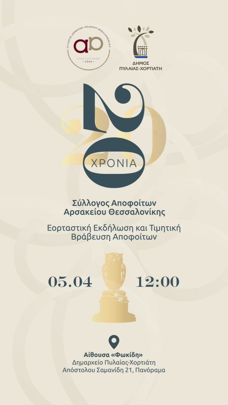 «Το Αρσάκειο Σχολείο αποτελεί διαχρονικά έναν θεσμό παιδείας που δεν περιορίζεται στη γνώση, αλλά διαμορφώνει χαρακτήρες και πρότυπα. Οι απόφοιτοι που τιμώνται σήμερα είναι οι ζωντανοί φορείς αυτής της παράδοσης, αποδεικνύοντας ότι η εκπαίδευση αποκτά πραγματικό νόημα όταν μετατρέπεται σε προσφορά προς την κοινωνία. Η αναγνώριση αυτών των διαδρομών είναι ταυτόχρονα και μια υπενθύμιση για το τι οφείλουμε να καλλιεργούμε στις επόμενες γενιές», δήλωσε σχετικά ο Δήμαρχος Πυλαίας-Χορτιάτη και Πρόεδρος της Ένωσης Δήμων Κεντρικής Μακεδονίας, Ιγνάτιος Καϊτεζίδης.