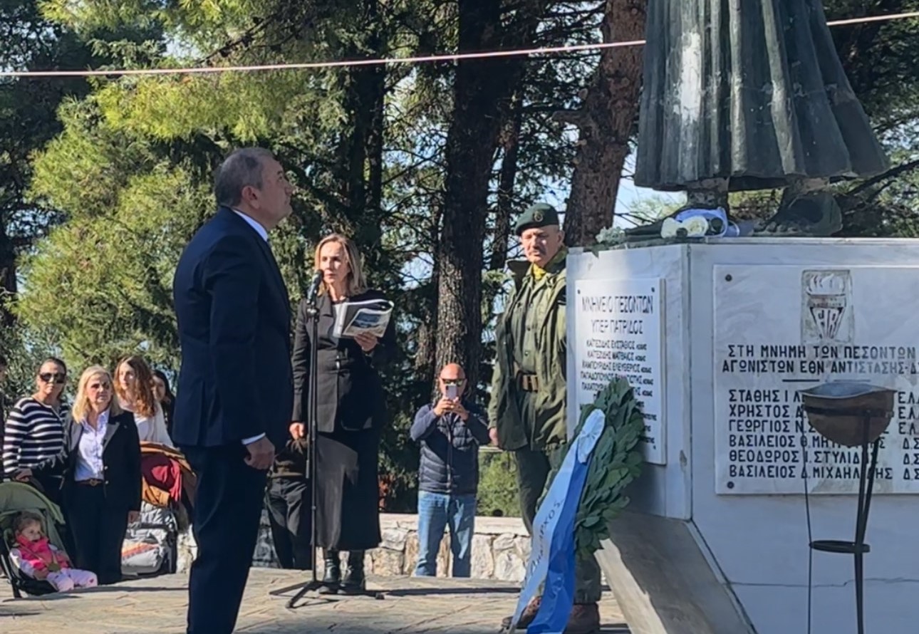 «Στα πρόσωπα των παιδιών μας που παρέλασαν τιμούμε τα παλικάρια που έδωσαν τη ζωή τους στο Σαραντάπορο, στα Γιαννιτσά και στα βουνά της Βορείου Ηπείρου. Οι νέοι μας σήμερα, όσοι αγωνίζονται για το εμείς υπερβαίνοντας το εγώ, είναι η άξια συνέχεια της ελεύθερης πατρίδας μας. Στη νέα μας γενιά στηρίζεται η πρόοδος της πατρίδας μας, στους εθνικούς αγώνες του πολέμου και της ειρήνης. Όλοι μαζί τιμήσαμε σήμερα και όσους με οποιοδήποτε τρόπο αγωνίστηκαν τα δύσκολα χρόνια, σε όσους έμειναν πιστοί στην ιδέα και την αξία που λέγεται Ελλάδα. Η απελευθέρωση της Θεσσαλονίκης το 1912 χάρισε την ελευθερία στη Μακεδονία μας από τον οθωμανικό ζυγό, ενώ ο Αγώνας του ’40 κατά του ναζισμού και του φασισμού χαρακτηρίστηκε έπος από κορυφαίες προσωπικότητες της εποχής. Αυτό δεν πρέπει να το ξεχνάμε. Είναι μέγιστο επίτευγμα, απλών ανθρώπων, σε δύσκολες εποχές, που ενωμένοι τα κατάφεραν. Γι’ αυτό επιμένω ότι η εθνική ομοψυχία και η εθνική ενότητα, δεν είναι σύνθημα. Είναι η εντολή της Ελληνικής Ιστορίας προς όλους μας».