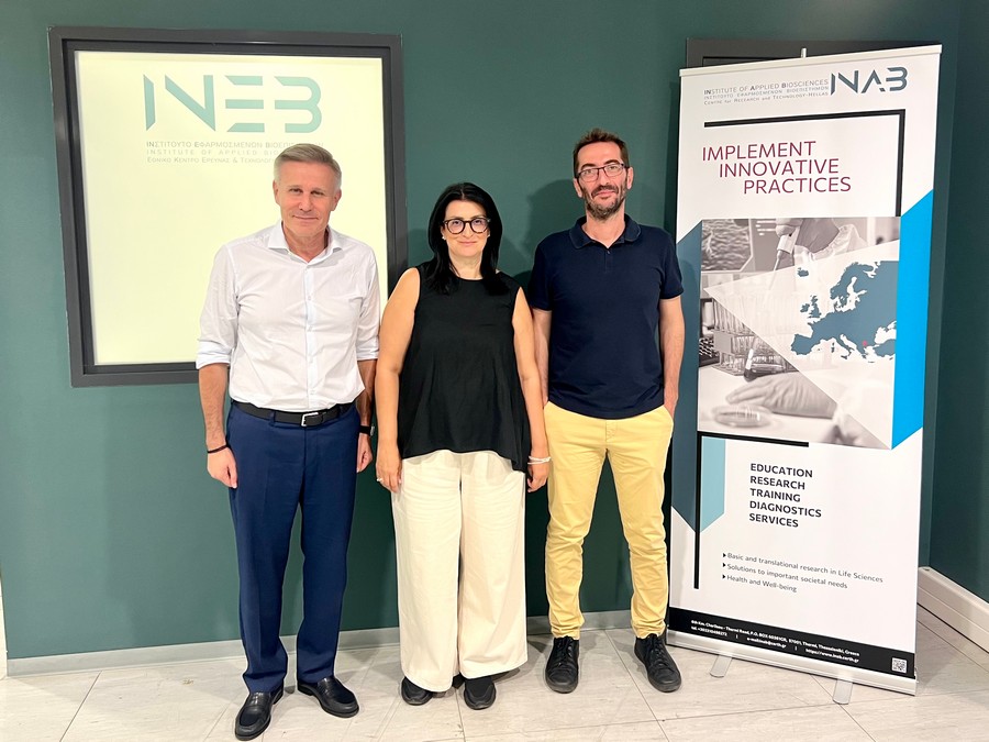 Η Διευθύντρια του Ινστιτούτου, Δρ. Αναστασία Χατζηδημητρίου, ξενάγησε τον κ. Καραγιάννη στα εργαστήρια του ΙΝΕΒ και ακολούθησε συνάντηση με τη συμμετοχή και των ερευνητών, κ. Κώστα Σταματόπουλου - Διευθυντή Τομέα Κλινικών Μελετών, κ. Παντελή Νατσιάβα - Διευθυντή Εργαστηρίου Ψηφιακής Υγείας και κ. Φώτη Ψωμόπουλο – Διευθυντή Εργαστηρίου Βιοπληροφορικής.