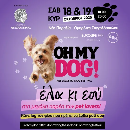 Η Θεσσαλονίκη υποδέχεται 18 & 19 Οκτωβρίου το Oh My Dog Thessaloniki, το μοναδικό pet festival στη Βόρεια Ελλάδα, που έρχεται για να χαρίσει δύο ημέρες γεμάτες παιχνίδι, χαρά και αγάπη για τα κατοικίδιά μας.