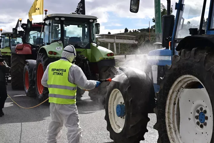 Απολυμαίνουν τα τρακτέρ πριν μπουν στην Αθήνα